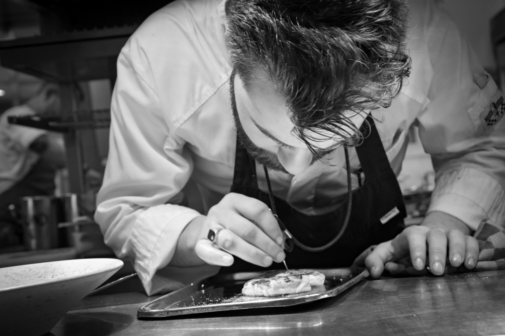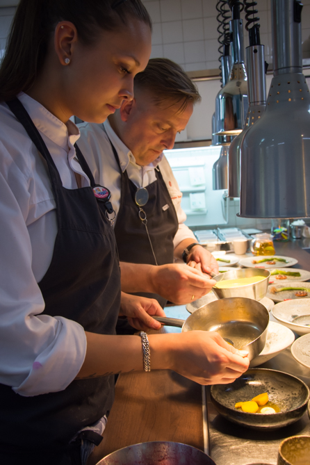 “Restaurant Vermeer bestaat nu 25 jaar,” gaat Chris verder, “elf jaar geleden ben ik hier begonnen als chef. In eerste instantie was het niet zo spannend wat er hier gebeurde, het was meer een kopie van een kopie wat er voorbij kwam. Tot je op een bepaald moment ziet wat er om je heen gebeurd en denkt van ‘Nee! Dit kan anders!’. Als chef heb je een voorbeeldfunctie. Ik zie het als mijn verantwoordelijkheid mooie gerechten te creëren met eerlijke producten zonder geouwehoer en poespas. What you see is what you get, back to basic, maar dan wel op hoog niveau en met bewust gekozen producten om mee te werken…”
