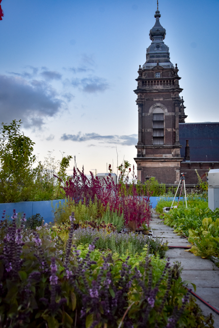 “Ik ben gek op de mixed cultures en diversiteit van Amsterdam!” aldus Chris, “dat ik Vermeer mijn werkplek mag noemen ben ik trots op. Vier jaar geleden hebben we in samenwerking met de Dakdokters en Growndowntown een moestuin op het dak van het hotel aangelegd. De plantjes worden als kleine stekkies aangeleverd en groeien verder op het dak. Wortels, bietjes, kruiden… Ik zal niet zeggen dat alles wat op het bord ligt van het dak afkomt, maar we streven ernaar zoveel mogelijk te werken met de producten die we zelf verbouwen. Eerlijker als dat krijg je het niet! Ik ben bijvoorbeeld ook enorm van mening dat de term ‘biologisch’ een nieuwe manier is om de mensen geld uit de zakken te kloppen. Er schort nog teveel aan. Laten we nu even eerlijk zijn, als je ziet hoe groot de opmars van biologische producten in de supermarkten is en dat terwijl het nog niet op die schaal geproduceerd kan worden, nee, geef mij maar liever een mooie appel of courgette van een locale boer, waarbij ik met mijn eigen ogen heb kunnen zien dat er op een verantwoorde manier wordt gewerkt…”